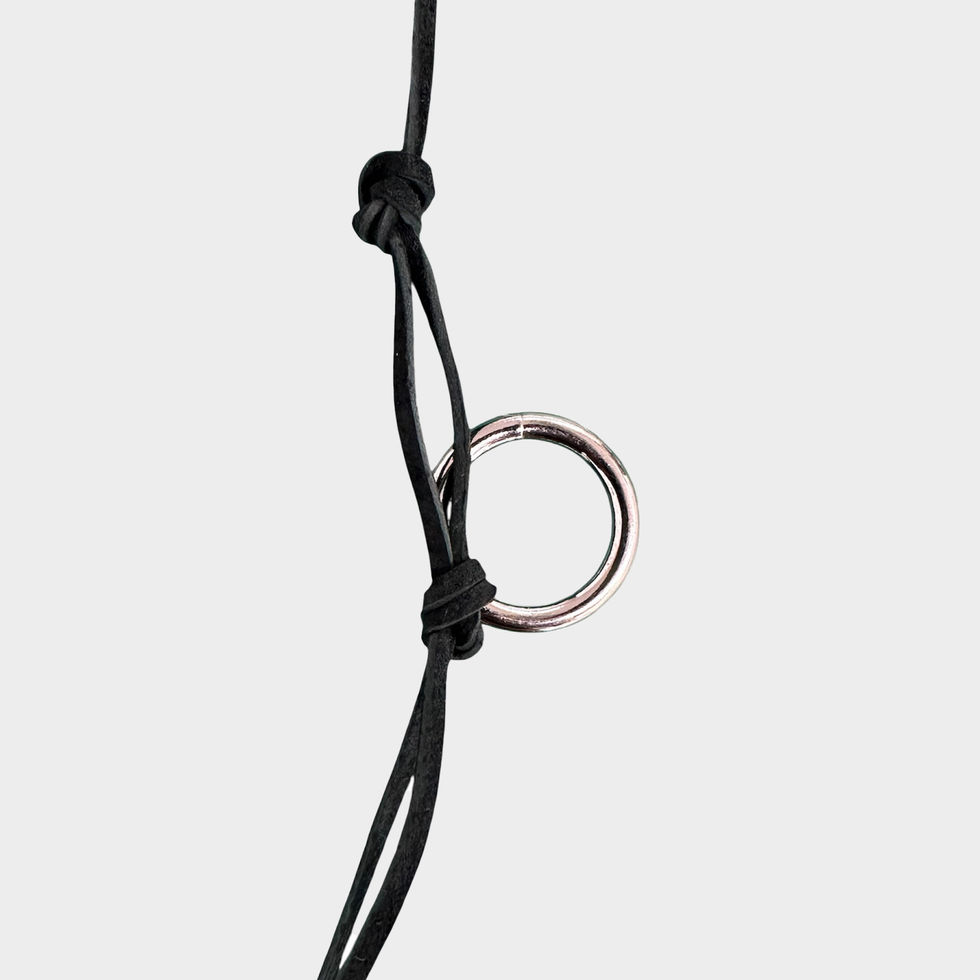 Leather key holder crafted in black, tan, mocha, and dark chocolate leather cord with nickel metal ring and snap hook.